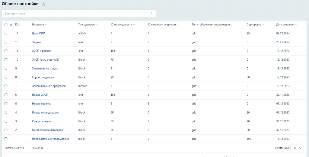 - Инфоблоки (списки и процессы в ленте)