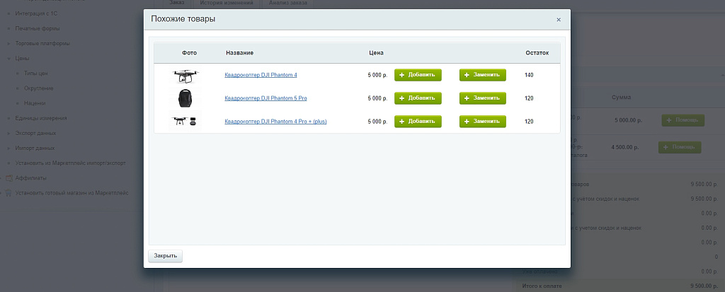 Теперь вам не нужно рыскать по каталогу и искать подходящую замену товару,которого нет или не подходит клиенту. Для этого есть помощник, он сам подберёт подходящие товары и даст вам подсказку.