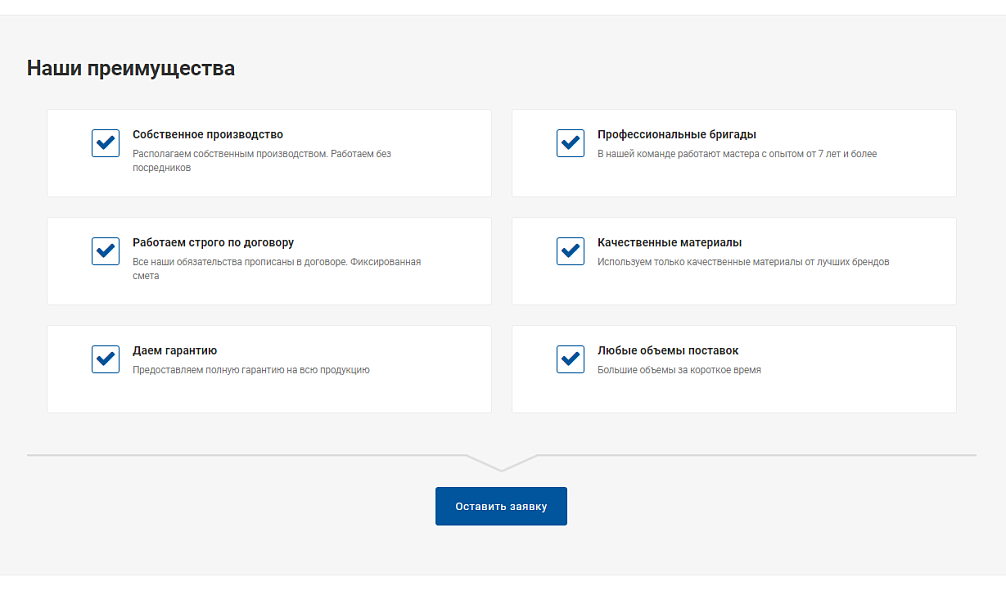 Сайт, который действительно продает. Главная страница оформлена в виде продающего лэндинга. Практически на всех основных страницах настроены отзывчивые формы для сбора контактов. Созданы основные страницы для презентации вашей компании: цены, акции, услуги, каталог, портфолио, контакты и т.д.